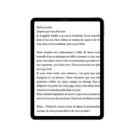 Lorsque vous vous inscrivez à Secret d’Influenceur, vous recevrez tous mes scripts ultra-performants et ma méthode secrète pour augmenter vos chances de travailler gratuitement avec un influenceur de 30%